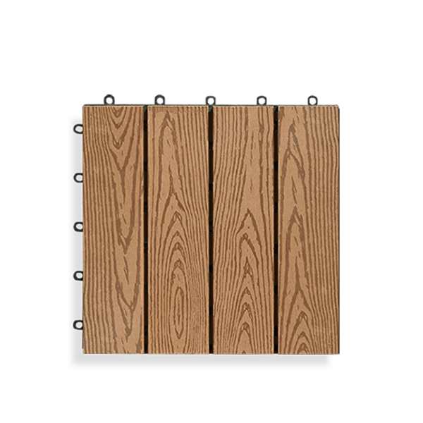 Vỉ gỗ nhựa lót sàn, thành phẩm theo từng tấm 300x300mm, dễ lắp ghép. Vỉ gỗ phù hợp lót những nơi ẩm ướt như sân vườn, sàn hồ bơi, phòng tắm, ban công… trang trí đẹp và chống trơn trượt