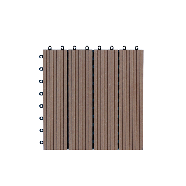 Vỉ gỗ nhựa lót sàn, thành phẩm theo từng tấm 300x300mm, dễ lắp ghép. Vỉ gỗ phù hợp lót những nơi ẩm ướt như sân vườn, sàn hồ bơi, phòng tắm, ban công… trang trí đẹp và chống trơn trượt