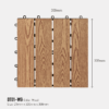 Vỉ gỗ nhựa lót sàn, thành phẩm theo từng tấm 300x300mm, dễ lắp ghép. Vỉ gỗ phù hợp lót những nơi ẩm ướt như sân vườn, sàn hồ bơi, phòng tắm, ban công… trang trí đẹp và chống trơn trượt